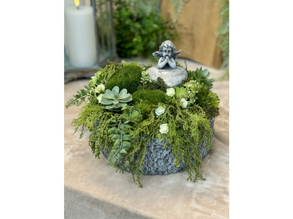 Aranžmán na hrob s anjelom spomíname 26x18cm