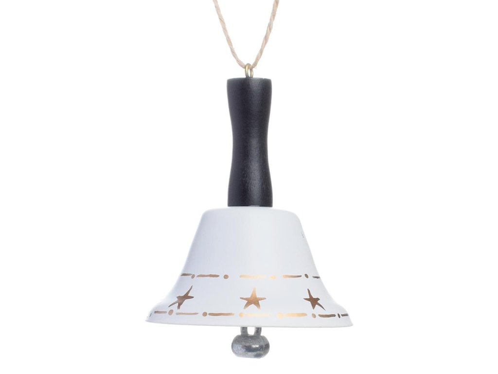 Biely železný zvonček s rúčkou, 6,5x6,5x8,5 cm
