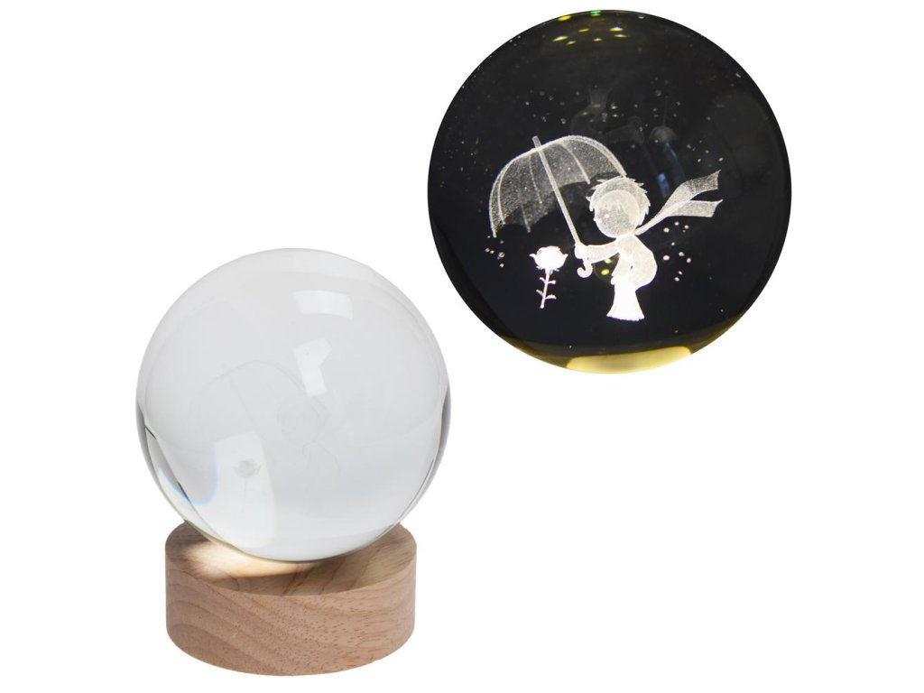 Led guľa-Malý princ- sklo na drevenom podstavci s podsvietením, 10 x 12 cm