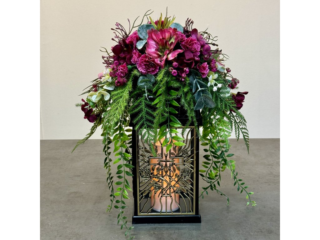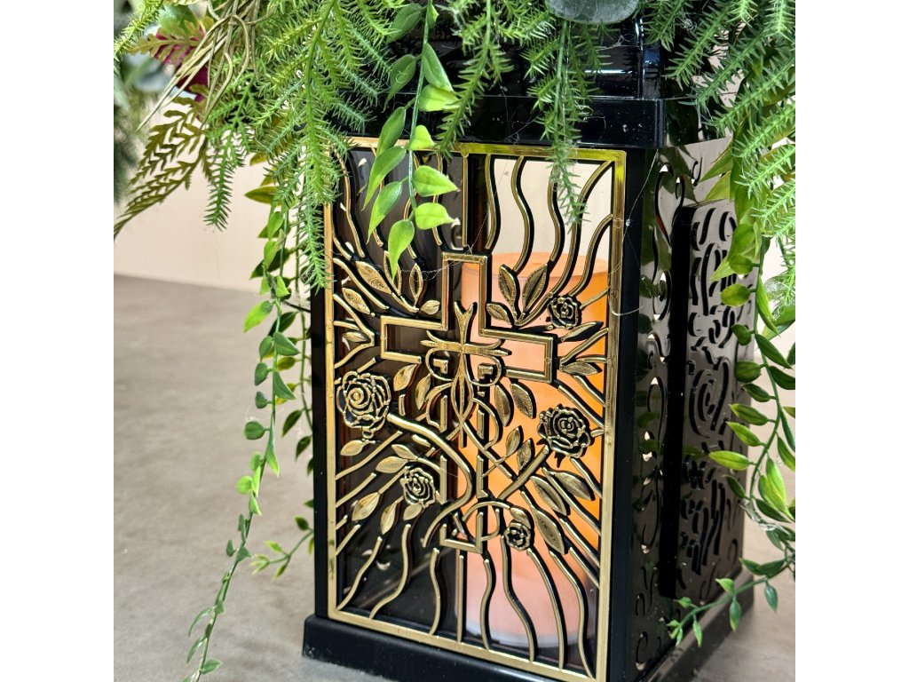 Ozdobený kahanec na hrob s LED sviečkou 35cm