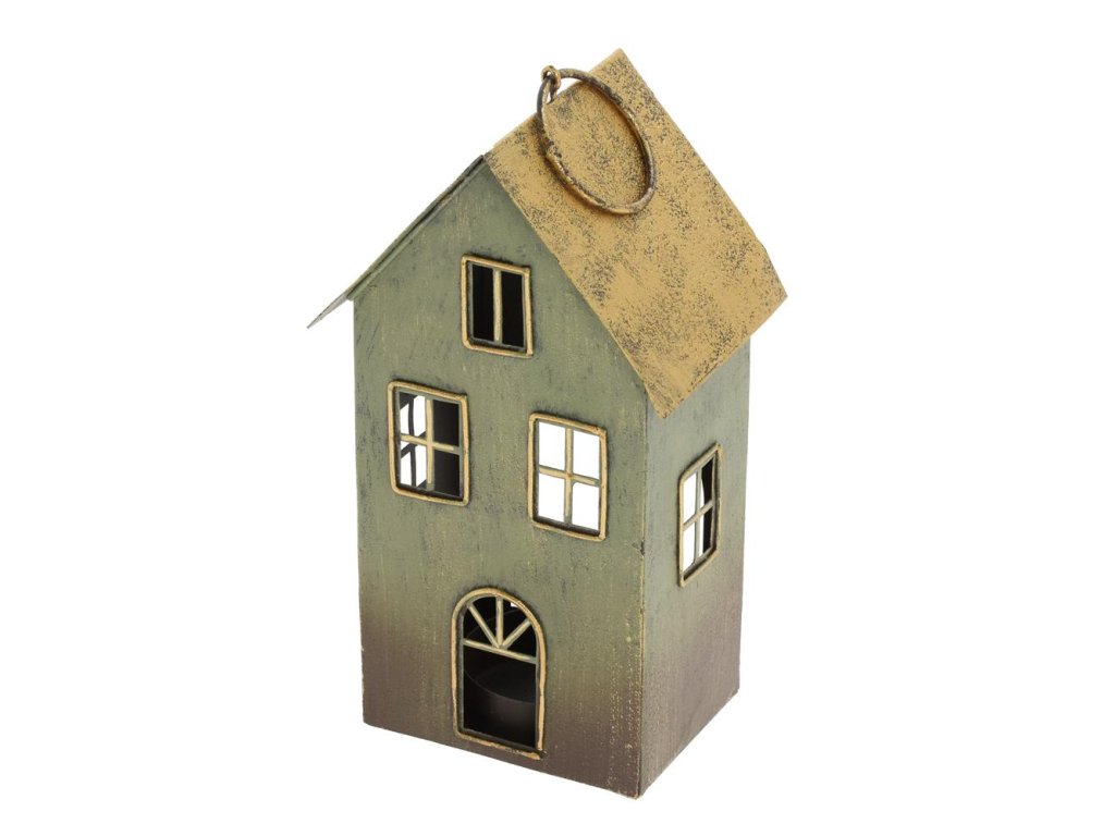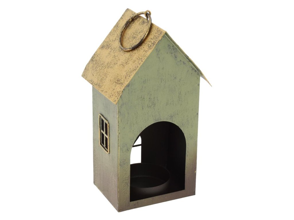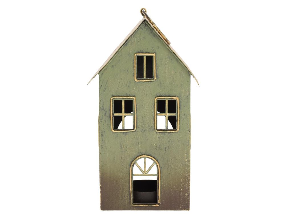 Zelený domček na čajovú sviečku, plech 17x10x7,5 cm
