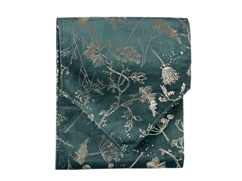 Vianočná štóla na stôl tmavozelený so zlatými kvetmi, 32x150 cm
