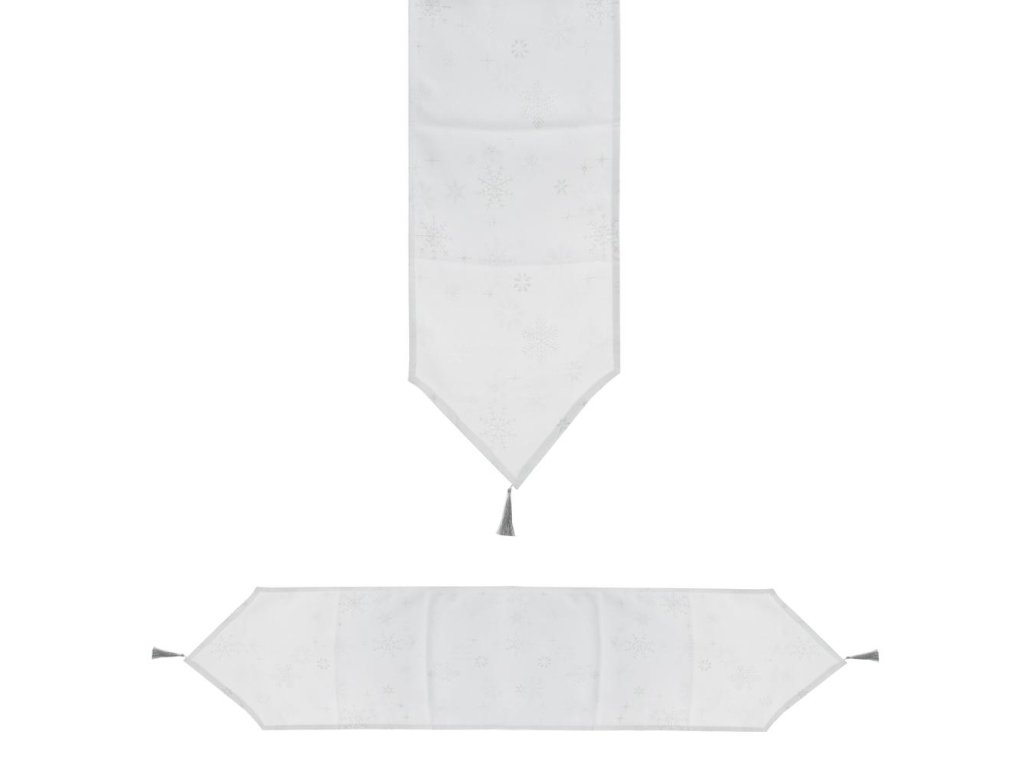 Vianočná štóla vločky bielo-strieborná, 30x150 cm