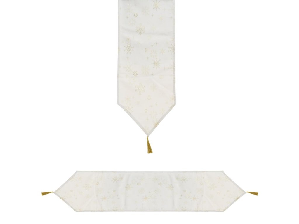 Vianočná štóla vločky krémovo-zlatá, 30 x150 cm