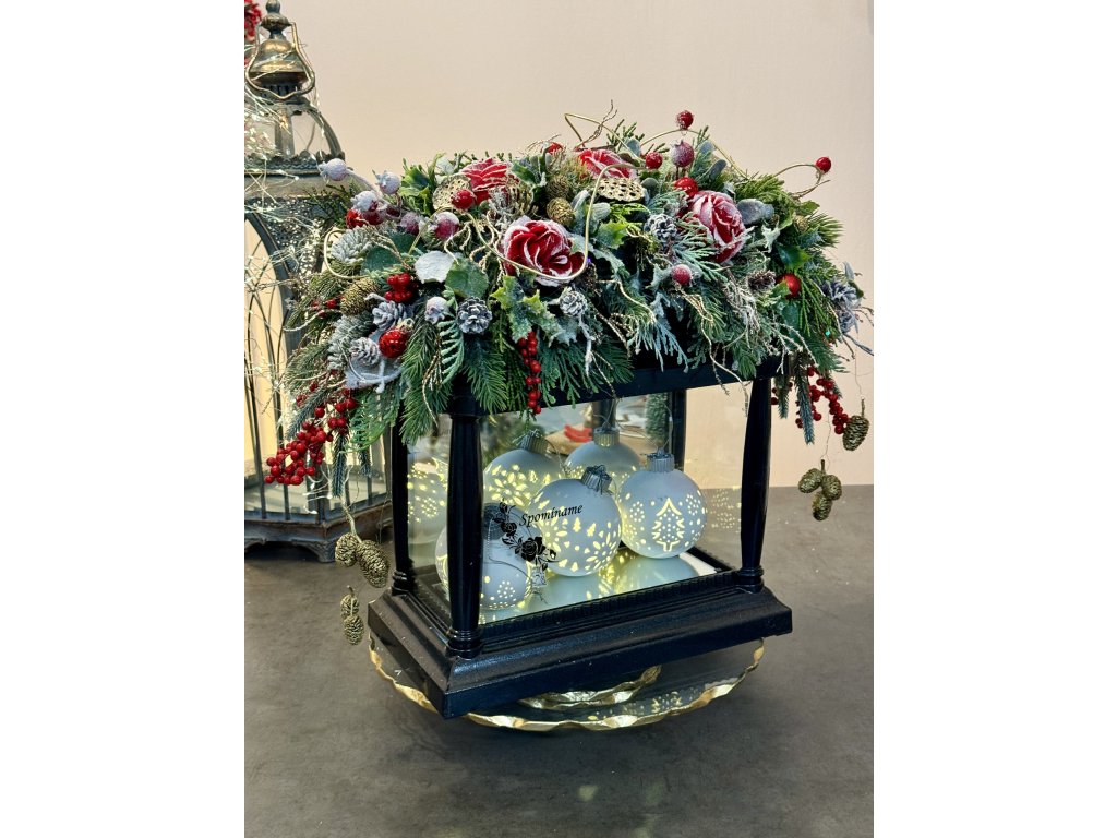 Vianočný lampáš na hrob s LED guľami 45x40cm