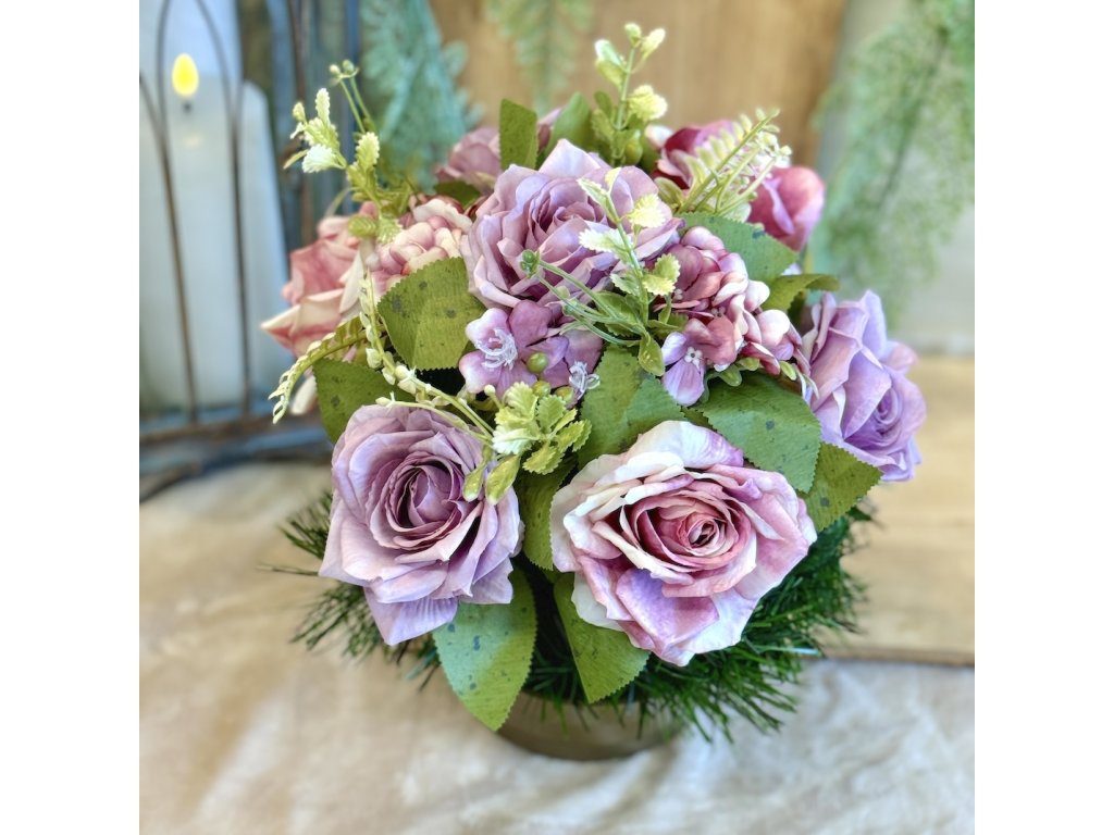 Zaťažená ikebana na hrob ruža 30cm