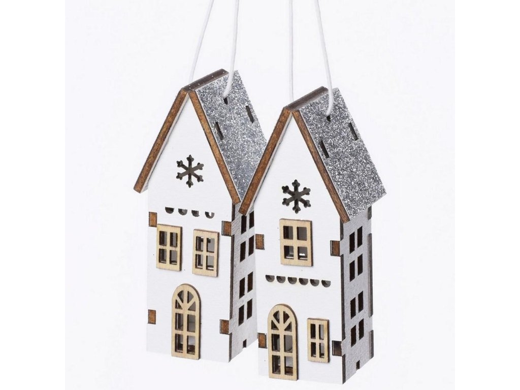 Záves drevený dom biely- strieborný, 3,2x3x7,5 cm