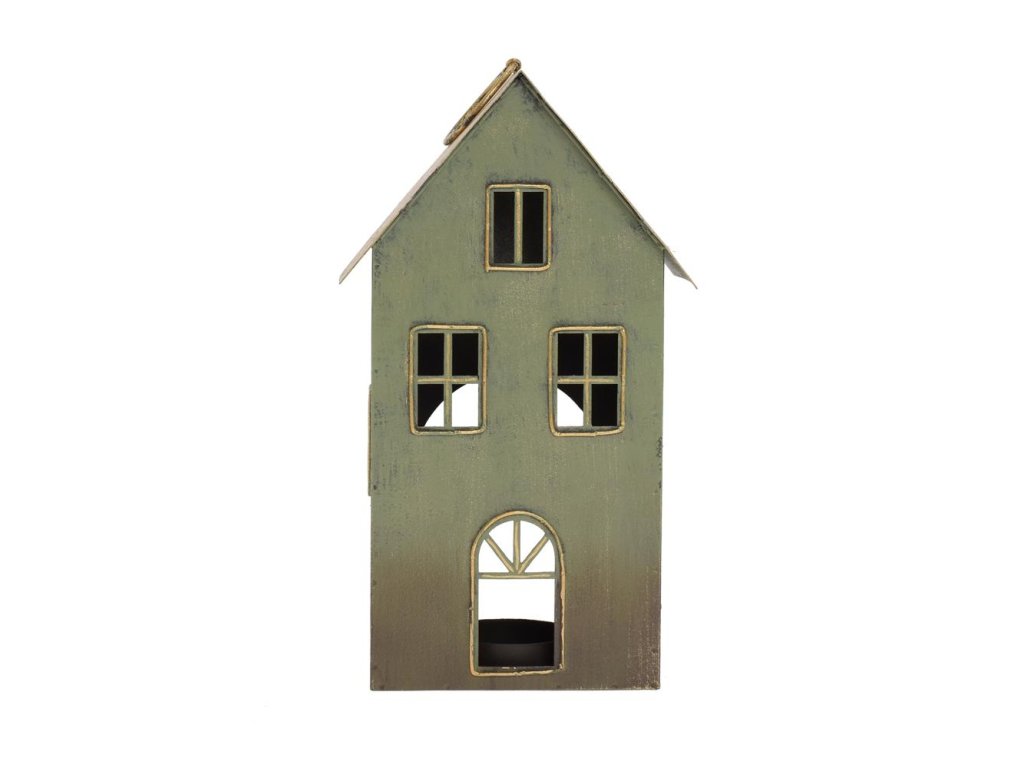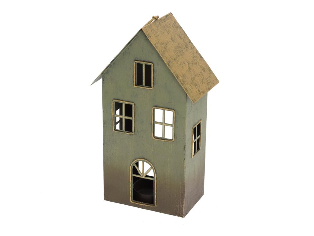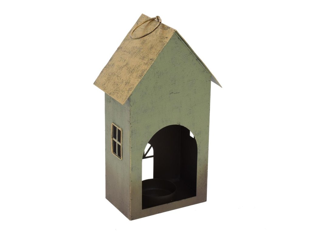 Zelený domček na čajovú sviečku, plech 22,5x13x8 cm